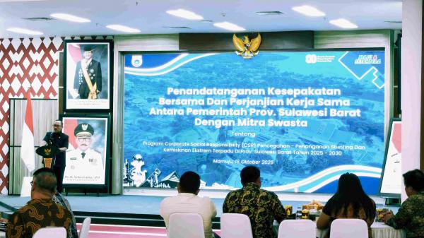 Kerja sama ini dituangkan dalam nota kesepahaman (MoU) antara Pemerintah Provinsi Sulbar dan 17 perusahaan mitra strategis dari berbagai sektor, mulai dari pertambangan, perkebunan, perbankan, hingga energi. Penandatanganan MoU berlangsung di Aula Marasa Center, Kantor Gubernur Sulbar, Rabu (16/10).